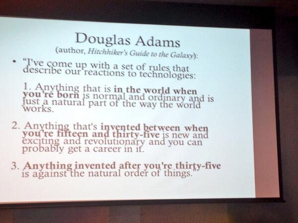 RT @elstopbanana: “@annegalloway: Douglas Adams brilliantly describes reactions to tech over time. http://t.co/wB1Sxqs0nP (via @DigitalEthno)” #digifest14