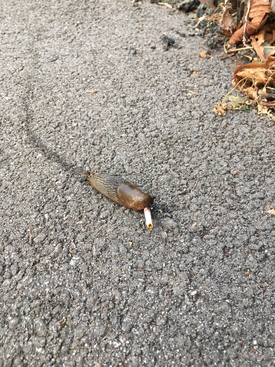 RT @KarenStaughton: Just walked past a slug with a cigarette in its mouth in Walthamstow. https://t.co/1FybCGKXvJ